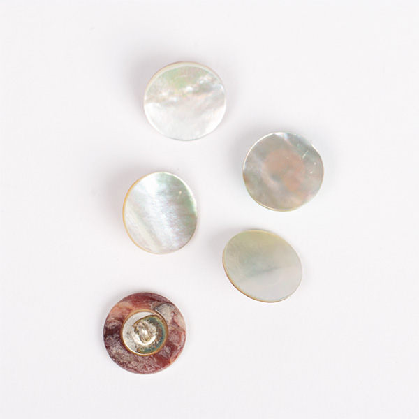 Os botões de madrepérola são delicados, polidos e muito resistentes; além do mais, devido ao facto de serem feitos de um material natural, cada botão apresenta variações únicas no que diz respeito à sua cor e textura. Isto significa que cada botão é, por si só, único.